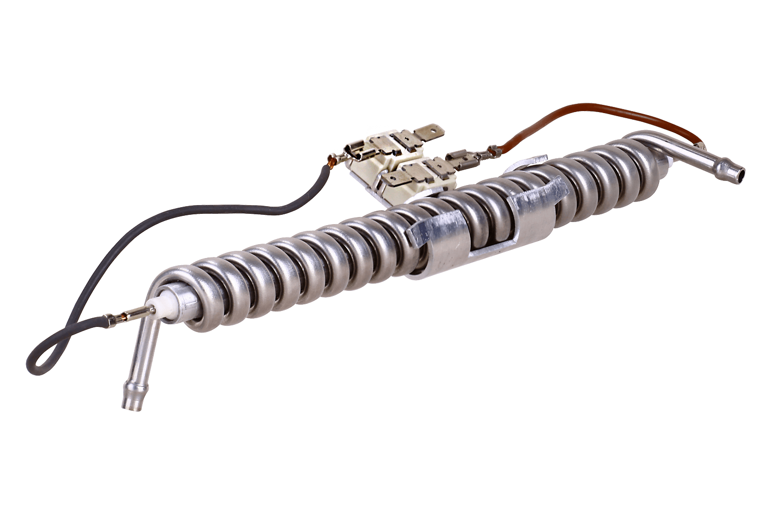 This component was developed especially for heating water in “beverage on demand” or “single serve” coffee makers. It is characterized by a compact shape and short heat-up time due to its low mass – which allows it to achieve a high degree of energy efficiency. It is possible to supply versions with stainless steel or aluminum water pipe.